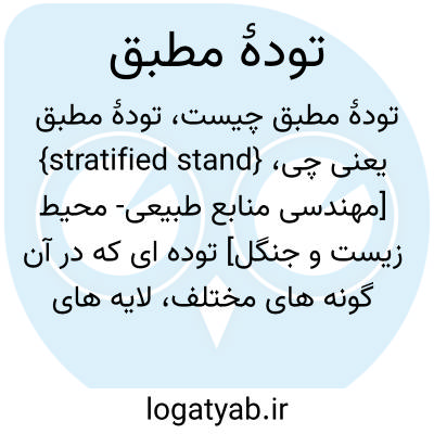{stratified stand} [مهندسی منابع طبیعی- محیط زیست و جنگل] توده ای که در آن گونه های مختلف، لایه های متفاوتی از کل تاج پوشش را اشغال کرده اند