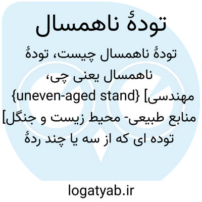 {uneven-aged stand} [مهندسی منابع طبیعی- محیط زیست و جنگل] توده ای که از سه یا چند ردۀ سنی تشکیل شده است