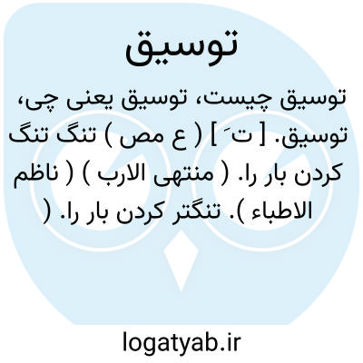 توسیق. [ ت َ ] ( ع مص ) تنگ تنگ کردن بار را. ( منتهی الارب ) ( ناظم الاطباء ). تنگتر کردن بار را. ( آنندراج ). || وسق الحنطة توسیقاً؛ جعلها وسقاً وسقاً؛ باربار قرار داد گندم را. ( از اقرب الموارد ).