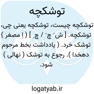 توشکچه. [ ش َ چ َ / چ ِ ] ( اِ مصغر ) توشک خرد. ( یادداشت بخط مرحوم دهخدا ). رجوع به توشک ( نهالی ) شود.