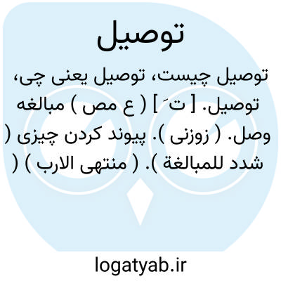 توصیل. [ ت َ ] ( ع مص ) مبالغه وصل. ( زوزنی ). پیوند کردن چیزی ( شدد للمبالغة ). ( منتهی الارب ) ( آنندراج ) ( ناظم الاطباء ) ( از اقرب الموارد ).