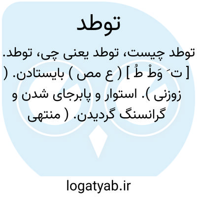 توطد. [ ت َ وَطْ طُ ] ( ع مص ) بایستادن. ( زوزنی ). استوار و پابرجای شدن و گرانسنگ گردیدن. ( منتهی الارب ) ( آنندراج ) ( ناظم الاطباء ).