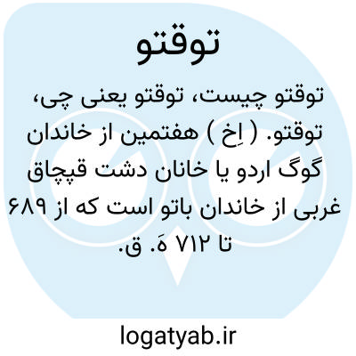 توقتو. ( اِخ ) هفتمین از خاندان گوگ اردو یا خانان دشت قپچاق غربی از خاندان باتو است که از 689 تا 712 هَ. ق. حکومت داشت. ( یادداشت بخط مرحوم دهخدا ). رجوع به طبقات سلاطین اسلام ترجمه اقبال ص 204 شود.
