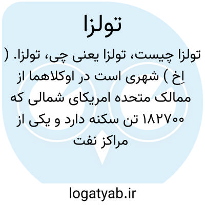تولزا. ( اِخ ) شهری است در اوکلاهما از ممالک متحده امریکای شمالی که 182700 تن سکنه دارد و یکی از مراکز نفت امریکاست. ( از لاروس ).