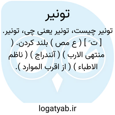 تونیر. [ ت َ ] ( ع مص ) بلند کردن. ( منتهی الارب ) ( آنندراج ) ( ناظم الاطباء ) ( از اقرب الموارد ).