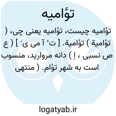 ( تؤامیة ) تؤامیة. [ ت ُ آ می ی َ ] ( ع ص نسبی، اِ ) دانه مروارید، منسوب است به شهر تؤام. ( منتهی الارب ). رجوع به الجماهر ص 107 و توأمیة و توآم شود.