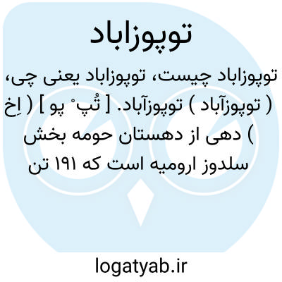 ( توپوزآباد ) توپوزآباد. [ تُپ ْ پو ] ( اِخ ) دهی از دهستان حومه بخش سلدوز ارومیه است که 191 تن سکنه دارد. ( از فرهنگ جغرافیایی ایران ج 4 ).
