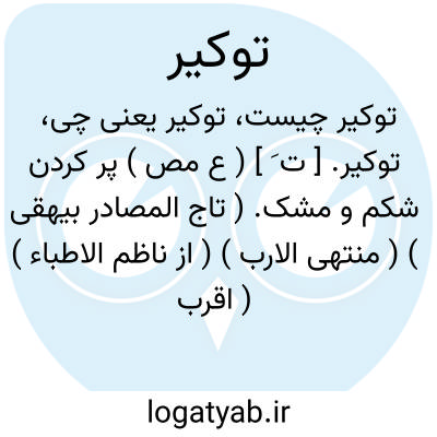 توکیر. [ ت َ ] ( ع مص ) پر کردن شکم و مشک. ( تاج المصادر بیهقی ) ( منتهی الارب ) ( از ناظم الاطباء ) ( اقرب الموارد ). || مهمانی بنا کردن. ( تاج المصادر بیهقی ) ( زوزنی ). مهمانی بنای نو دادن. ( منتهی الارب ) ( ناظم الاطباء ) ( از اقرب الموارد ).