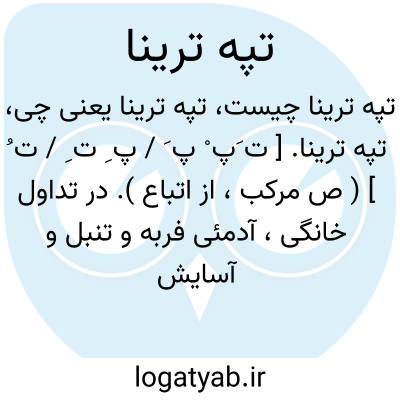 تپه ترینا. [ ت َپ ْ پ َ / پ ِ ت ِ / ت ُ ] ( ص مرکب، از اتباع ). در تداول خانگی، آدمئی فربه و تنبل و آسایش جوی که هیچ کار نداند و نکند و دائم بر یک جای نشسته بود. فربهی و نرم و کاهل و سست. ( یادداشت بخط مرحوم دهخدا ).