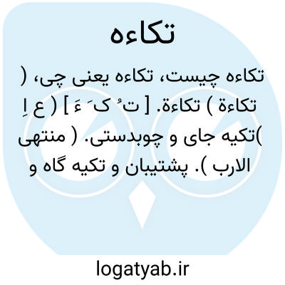 ( تکاءة ) تکاءة. [ ت ُ ک َ ءَ ] ( ع اِ )تکیه جای و چوبدستی. ( منتهی الارب ). پشتیبان و تکیه گاه و عصا و توشک و متکا. ( ناظم الاطباء ). آنچه بر آن تکیه کنند از عصا و جز آن، چون شمشیر و کمان. ( از اقرب الموارد ). بالش تکیه. ( مهذب الاسماء ). تکیه جای. ( صراح اللغة ). || ( ص ) مرد بسیار تکیه کننده برچیزی. ( منتهی الارب ). کسی که بر پهلوی خود بسیار تکیه کند. ( ناظم الاطباء ). مرد بسیاراتکاء. ( از اقرب الموارد ). || مرد گران. ( از اقرب الموارد ).