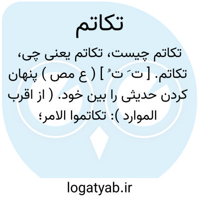 تکاتم. [ ت َ ت ُ ] ( ع مص ) پنهان کردن حدیثی را بین خود. ( از اقرب الموارد ): تکاتموا الامر؛ پنهان کردند آن کار را بعضی از بعضی. ( ناظم الاطباء ).