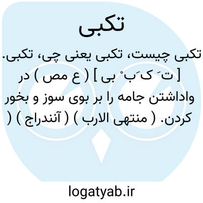 تکبی. [ ت َ ک َب ْ بی ] ( ع مص ) در واداشتن جامه را بر بوی سوز و بخور کردن. ( منتهی الارب ) ( آنندراج ) ( ناظم الاطباء ) ( از اقرب الموارد ).
