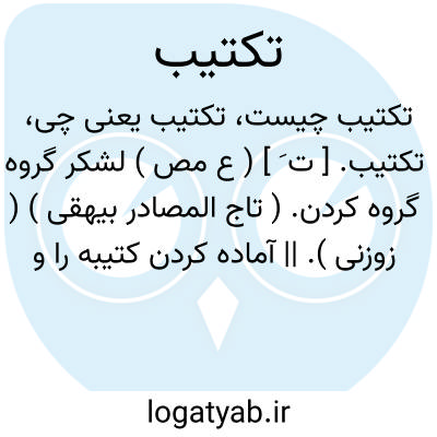 تکتیب. [ ت َ ] ( ع مص ) لشکر گروه گروه کردن. ( تاج المصادر بیهقی ) ( زوزنی ). || آماده کردن کتیبه را و فراهم آوردن و کتیبه کتیبه کردن. ( منتهی الارب ) ( ناظم الاطباء ) ( از اقرب الموارد ). || نوشتن. || نوشتن آموختن. ( منتهی الارب ) ( آنندراج ) ( ناظم الاطباء ) ( از اقرب الموارد ). || پستان اشتر ببستن. ( تاج المصادر بیهقی ).