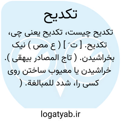 لغت نامه دهخدا تکدیح. [ ت َ ] ( ع مص ) نیک بخراشیدن. ( تاج المصادر بیهقی ). خراشیدن یا معیوب ساختن روی کسی را، شدد للمبالغة. ( منتهی الارب ) ( از آنندراج ) ( ناظم الاطباء ) ( از اقرب الموارد ).