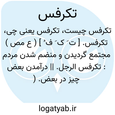 تکرفس. [ ت َ ک َ ف ُ ] ( ع مص ) مجتمع گردیدن و منضم شدن مردم: تکرفس الرجل. || درآمدن بعض چیز در بعض. ( منتهی الارب ) ( آنندراج ) ( ناظم الاطباء ). منضم شدن و درآمدن بعض چیز در بعض. ( از اقرب الموارد ).