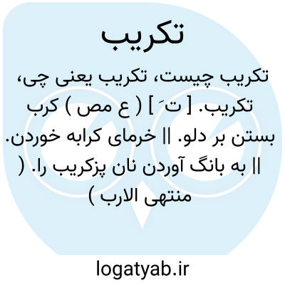 تکریب. [ ت َ ] ( ع مص ) کرب بستن بر دلو. || خرمای کرابه خوردن. || به بانگ آوردن نان پزکریب را. ( منتهی الارب ) ( آنندراج ) ( از ناظم الاطباء ) ( از اقرب الموارد ). || کشت کردن در زمین بی آب و گیاه. ( از اقرب الموارد ). رجوع به کریب شود.