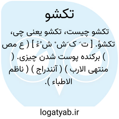 لغت نامه دهخدا تکشؤ. [ ت َ ک َش ْ ش ُءْ ] ( ع مص ) برکنده پوست شدن چیزی. ( منتهی الارب ) ( آنندراج ) ( ناظم الاطباء ). تقشر چیزی. ( از اقرب الموارد ). || پرشکم شدن از طعام. || گوشت خشک خوردن. ( منتهی الارب ) ( آنندراج ) ( ناظم الاطباء ) ( از اقرب الموارد ).
