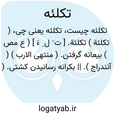 ( تکلئة ) تکلئة. [ ت َ ل ِ ءَ ] ( ع مص ) بیعانه گرفتن. ( منتهی الارب ) ( آنندراج ). || بکرانه رسانیدن کشتی. ( منتهی الارب ) ( آنندراج ) ( ناظم الاطباء ). نزدیک گردانیدن کشتی را به کرانه رود. ( از اقرب الموارد ). || بستن کشتی را. ( منتهی الارب ) ( آنندراج ) ( ناظم الاطباء ). || بجای آمدن که باد کم گذرد. ( منتهی الارب ) ( آنندراج ) ( ناظم الاطباء ) ( از اقرب الموارد ). || بند کردن و بازداشتن. || پیش آمدن و نگریستن. ( منتهی الارب ) ( آنندراج ) ( ناظم الاطباء ). به همه معانی رجوع به تکلیی شود.