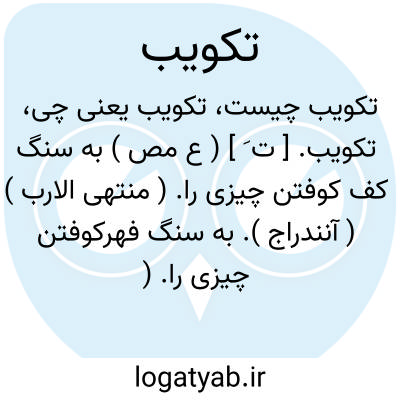 تکویب. [ ت َ ] ( ع مص ) به سنگ کف کوفتن چیزی را. ( منتهی الارب ) ( آنندراج ). به سنگ فهرکوفتن چیزی را. ( ناظم الاطباء ) ( از اقرب الموارد ).