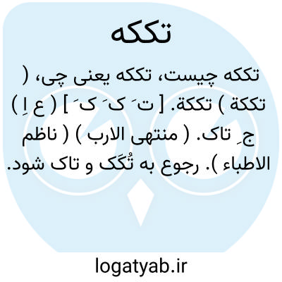 ( تککة ) تککة. [ ت َ ک َ ک َ ] ( ع اِ ) ج ِ تاک. ( منتهی الارب ) ( ناظم الاطباء ). رجوع به تُکَک و تاک شود.