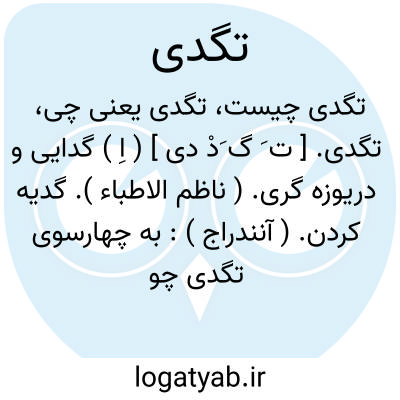 تگدی. [ ت َ گ َدْ دی ] ( اِ ) گدایی و دریوزه گری. ( ناظم الاطباء ). گدیه کردن. ( آنندراج ):