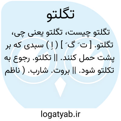تگلتو. [ ت َ گ َ ] ( اِ ) سبدی که بر پشت حمل کنند. || تکلتو. رجوع به تکلتو شود. || بروت. شارب. ( ناظم الاطباء ).
