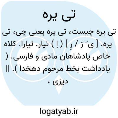 تی یره. [ ی َ رَ / رِ ] ( اِ ) تیار. تیارا. کلاه خاص پادشاهان مادی و فارسی. ( یادداشت بخط مرحوم دهخدا ). || دیزی، در لهجه مردم قزوین و جاهای دیگر، برای شباهت او به تیارا. قسمی دیگ سفالین شبیه به تیار، تاج سلاطین ایران که در بعض بلاد آن را دیزی گویند... و آن ظرفی سفالین است که در آن گوشت و آش و امثال آن پزند. تیریه. ( از یادداشتهای مرحوم دهخدا ).