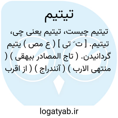 تیتیم. [ ت َ تی ] ( ع مص ) یتیم گردانیدن. ( تاج المصادر بیهقی ) ( منتهی الارب ) ( آنندراج ) ( از اقرب الموارد ). یتیم و بی پدر گردانیدن. ( ناظم الاطباء ).