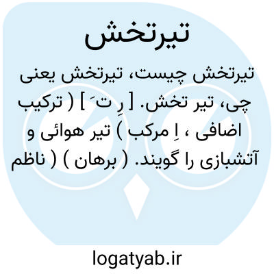 تیر تخش. [ رِ ت َ ] ( ترکیب اضافی، اِ مرکب ) تیر هوائی و آتشبازی را گویند. ( برهان ) ( ناظم الاطباء ). تیر هوائی و تیر ناوک و تیر آتشبازی... ( غیاث اللغات ). تیر هوائی آتشبازی شبهای عید و عروسی را گویند. ( انجمن آرا ) ( آنندراج ):