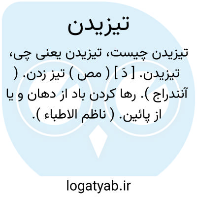 تیزیدن. [ دَ ] ( مص ) تیز زدن. ( آنندراج ). رها کردن باد از دهان و یا از پائین. ( ناظم الاطباء ). تیز دادن. تیز رها کردن. گوزیدن. ( یادداشت بخط مرحوم دهخدا ):
