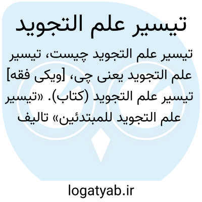 [ویکی فقه] تیسیر علم التجوید (کتاب). «تیسیر علم التجوید للمبتدئین» تالیف ابی عبد الرحمن مصطفی حسین به زبان عربی جهت آشنایی مبتدیان با علم تجوید و روخوانی قرآن میباشد.