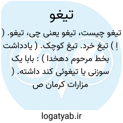 تیغو. ( اِ ) تیغ خرد. تیغ کوچک. ( یادداشت بخط مرحوم دهخدا ): بابا یک سوزنی یا تیغوئی کند داشته. ( مزارات کرمان ص 164، یادداشت ایضاً ).