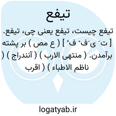 تیفع. [ ت َ ی َف ْ ف ُ ] ( ع مص ) بر پشته برآمدن. ( منتهی الارب ) ( آنندراج ) ( ناظم الاطباء ) ( اقرب الموارد ). یقال: ترفع فلان و تیفع. ( اقرب الموارد ).