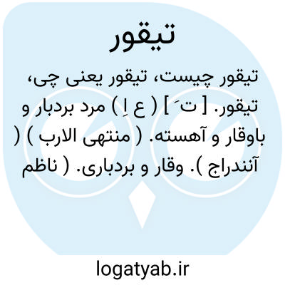 تیقور. [ ت َ ] ( ع اِ ) مرد بردبار و باوقار و آهسته. ( منتهی الارب ) ( آنندراج ). وقار و بردباری. ( ناظم الاطباء ). وقار. ( اقرب الموارد ). «تاء» آن مبدل «واو» است چنانکه در تراث و وراث. ( منتهی الارب ) ( از اقرب الموارد ).