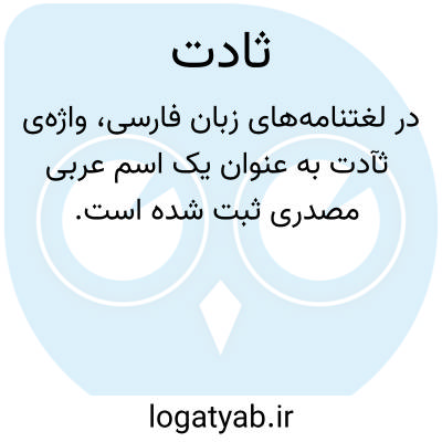 در لغتنامه‌های زبان فارسی، واژه‌ی ثآدت به عنوان یک اسم عربی مصدری ثبت شده است. ریشه‌ی این کلمه، از ثَأَدَ گرفته شده و در متون کهن به‌کار رفته است. این واژه به‌صورت خاص، به معنای فربهی و چاقی به‌کار می‌رود و بر حالت پرورده‌شدن و افزایش حجم بدن دلالت دارد. استفاده از آن بیشتر در متون ادبی و تاریخی دیده می‌شود و در گویش عامیانه و زبان رسمی امروز، کمتر رواج دارد. با توجه به تحولات زبانی و جایگزینی واژگان، امروزه برای بیان این مفهوم، از کلماتی مانند فربهی، چاقی یا تغذیه‌ی خوب استفاده می‌شود. بنابراین، ثآدت را می‌توان یک واژه‌ی تاریخی و تخصصی در حوزه‌ی زبان‌شناسی و متون کلاسیک به شمار آورد.