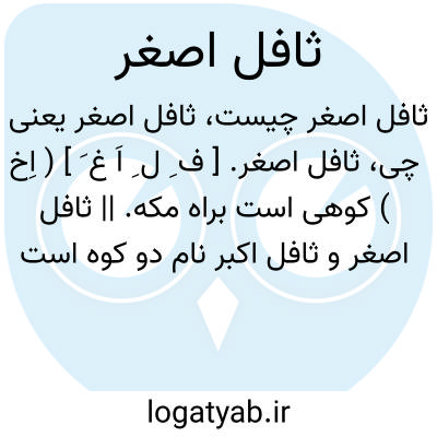 ثافل اصغر. [ ف ِ ل ِ اَ غ َ ] ( اِخ ) کوهی است براه مکه. || ثافل اصغر و ثافل اکبر نام دو کوه است از بنی ضمره که فاصله آنها تا رضوی دو شب است. ( مراصد ).