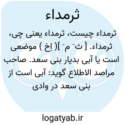 ثرمداء. [ ث َ م َ ]( اِخ ) موضعی است یا آبی بدیار بنی سعد. صاحب مراصد الاطلاع گوید: آبی است از بنی سعد در وادی الستارین و گویند بکسر میم نام شهری است و هم گویند نام قریه ای است در وشم یمامه. و با کسر ثاء هم روایت شده است.