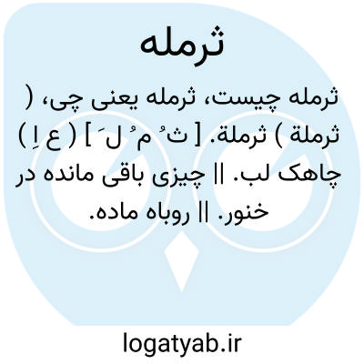 ( ثرملة ) ثرملة. [ ث ُ م ُ ل َ ] ( ع اِ ) چاهک لب. || چیزی باقی مانده در خنور. || روباه ماده.
