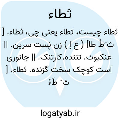 ثطاء. [ ث َطْ طا] ( ع اِ ) زن پَست سرین. || عنکبوت. تننده.کارتنک. || جانوری است کوچک سخت گزنده.