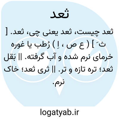ثعد. [ ث َ ] ( ع ص، اِ ) رُطب یا غوره خرمای نرم شده و آب گرفته. || بَقل ثعد؛ تره تازه و تر. || ثری ثعد؛ خاک نرم. || ماله ثعد و لامعد؛ نیست او را اندک و بسیار.
