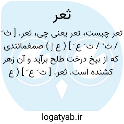لغت نامه دهخدا ثعر. [ ث َ / ث ُ / ث َ ع َ ] ( ع اِ ) صمغمانندی که از بیخ درخت طلح برآید و آن زهر کشنده است.ثعر. [ ث َ ع َ ] ( ع اِ ) کثرة ثآلیل. بسیاری ازخها. ( تاج العروس ).