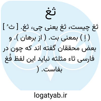 ثغ. [ ث ُ ] ( اِ ) بمعنی بت. ( از برهان ). و بعض محققان گفته اند که چون در فارسی ثاء مثلثه نباید این لفظ فُغ بفاست. ( غیاث اللغة ).