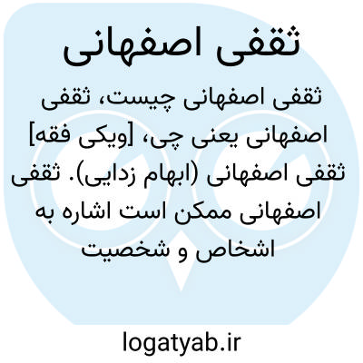 [ویکی فقه] ثقفی اصفهانی (ابهام زدایی). ثقفی اصفهانی ممکن است اشاره به اشخاص و شخصیت های ذیل باشد: • ابواسحاق ابراهیم بن محمد ثقفی کوفی اصفهانی، محدّث، فقیه، مورخ و مؤلف پر اثر شیعه امامی نیمه دوم سده سوم هجری• ابواسحاق ابراهیم بن محمد ثقفی اصفهانی، از فقها و محدثین امامی ساکن اصفهان در قرن سوم هجری• ابواسحاق ابراهیم بن محمد طیان ثقفی اصفهانی، از علماء و محدّثین شیعه اصفهان در قرن سوم هجری• ابواسحاق اسماعیل بن ابراهیم ثقفی اصفهانی، از محدّثین اصفهان• ابوالحسین اسید بن عاصم ثقفی اصفهانی، از محدّثین اصفهان در قرن سوم هجری• ابومحمد راشد بن معدان ثقفی اصفهانی، از محدثین اصفهان در قرن سوم هجری