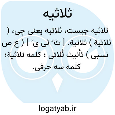 ( ثلاثیة ) ثلاثیة. [ ث ُ ثی ی َ ] ( ع ص نسبی ) تأنیث ثُلاثی؛ کلمه ثلاثیة؛ کلمه سه حرفی.