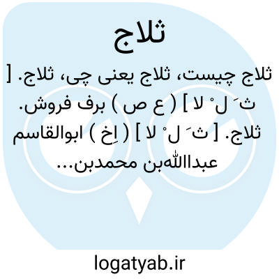 ثلاج. [ ث َ ل ْ لا ] ( اِخ ) ابوالقاسم عبداﷲبن محمدبن... بحتربن ثلاج به این نسبت معروف است. ( سمعانی ).