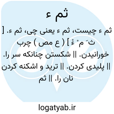 ثم ء. [ ث َ م ْ ءْ ] ( ع مص ) چرب خورانیدن. || شکستن چنانکه سر را. || پلیدی کردن. || ترید و اشکنه کردن نان را. || ثم ء کماة؛ افکندن سماروغ در روغن. || ثم ء لحیه بحنا؛ رنگ کردن ریش بحنا. || ثم ء بما فی البطن؛ خالی کردن شکم را از فضول.