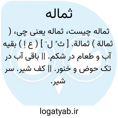 ( ثمالة ) ثمالة. [ ث ُ ل َ ] ( ع اِ ) بقیه آب و طعام در شکم. || باقی آب در تک حوض و خنور. || کف شیر. سر شیر. || لیف سرسبوی. ج، ثُمال.