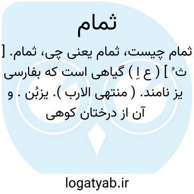 ثمام. [ ث ُ ] ( ع اِ ) گیاهی است که بفارسی یز نامند. ( منتهی الارب ). یزبُن. و آن از درختان کوهی باشد شبیه به اَثل و از آن حصیر سازند. مؤلف تحفةالمؤمنین گوید: بعربی اسم نباتیست شبیه بگندم و قدش کوتاه تر و ساقش باریکتر و بی بند و غیر مجوف و خوشه او شبیه به ارزن و طعم او شیرین و در تنکابن زراواش نامند. در دوم گرم ودر اول خشک و ضماد تازه او جهت ورم چشم و منع ریختن مواد و آشامیدن او محلل ریاح و مفتح سدد و خاکستر او جهت تقویت مژگان و رویانیدن آن و تقویت باصره نافع و مضر گرده و مصحلش کتیرا و قدر شربتش تا پنج مثقال و بدلش تودری است - انتهی. || برگ ِ گیاه یز را عرب حجنةالثمام گوید. ( منتهی الارب ). || هذاعلی طرف الثمام؛ یعنی این چیزی است که دست بدان میرسد و این مثل است در آنکه سهل المأخذ باشد.