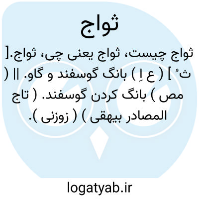 ثواج.[ ث ُ ] ( ع اِ ) بانگ گوسفند و گاو. || ( مص ) بانگ کردن گوسفند. ( تاج المصادر بیهقی ) ( زوزنی ).
