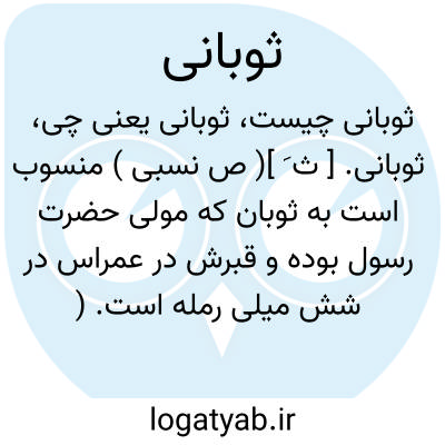 لغت نامه دهخدا ثوبانی. [ ث َ ]( ص نسبی ) منسوب است به ثوبان که مولی حضرت رسول بوده و قبرش در عمراس در شش میلی رمله است. ( سمعانی ).ثوبانی. [ ث َ ] ( اِخ ) ثوبانیة.